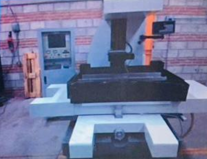 Erosionadora de corte por hilo con capacidad en mesa de 36" en eje x, 24" en eje Y. Con corte vertical a un espesor máximo de 12"