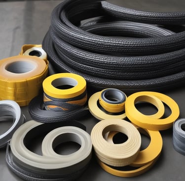 Sellado y Empaques Industriales: Contamos con una extensa gama de empaquetaduras trenzadas, incluyendo opciones en fibra de vidrio , grafito , PTFE , aramida , y carbono. También ofrecemos láminas comprimidas para juntas , láminas de grafito y cinta de Teflón expandible 100% PTFE.